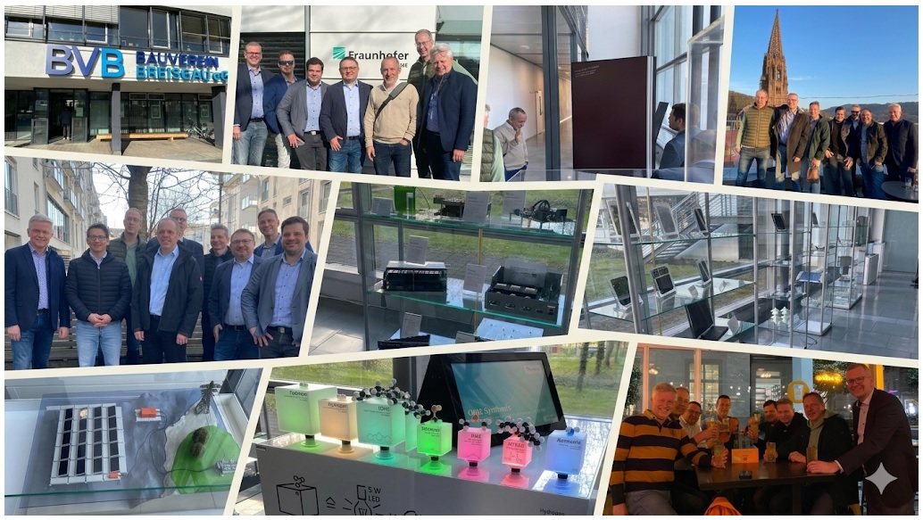 Schließlich empfing uns Peter Engelmann, Fraunhofer-Gesellschaft. Er gab uns einen kurzen allgemeinen Überblick zum Fraunhofer ISE und welche Themen im Geschäftsfeld klimaneutrale Wärme und Gebäude bearbeitet werden. Dazu gehörte der Fokus auf Peter Engelmanns Abteilung „Energieeffiziente Gebäude“ und seine Arbeitsgruppe „Gebäudesystemtechnik“. Den Abschluss bildete ein Rundgang zu den Exponaten der Arbeitsbereiche.